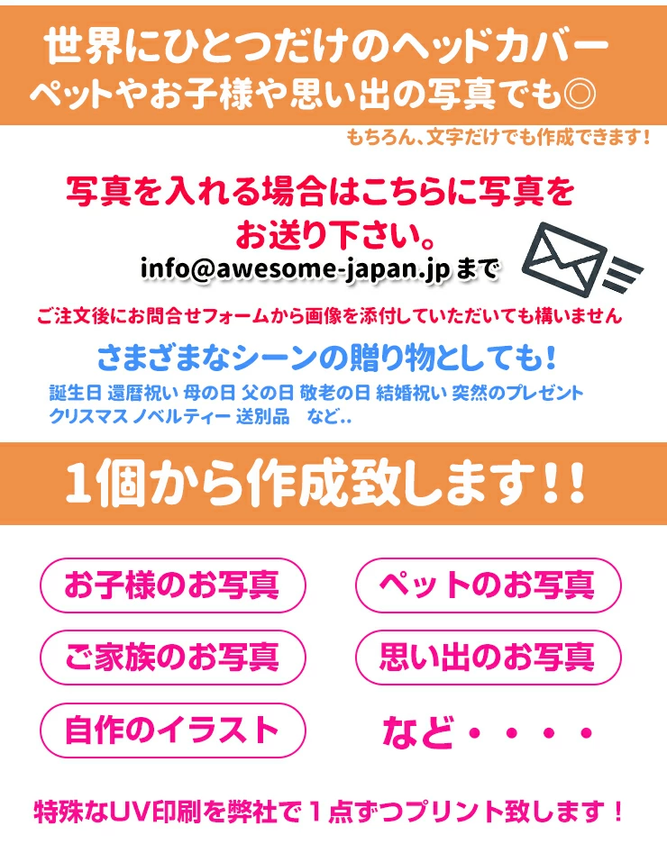 ※写真を入れる場合はご注文後に写真データを、info@awesome-japan.jp へ、お送りください!