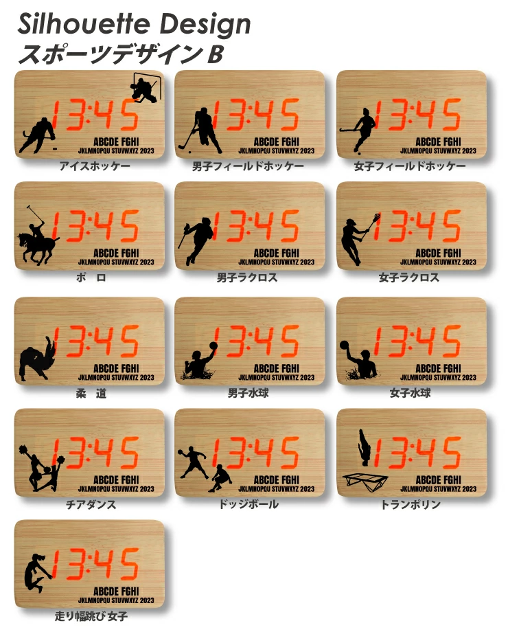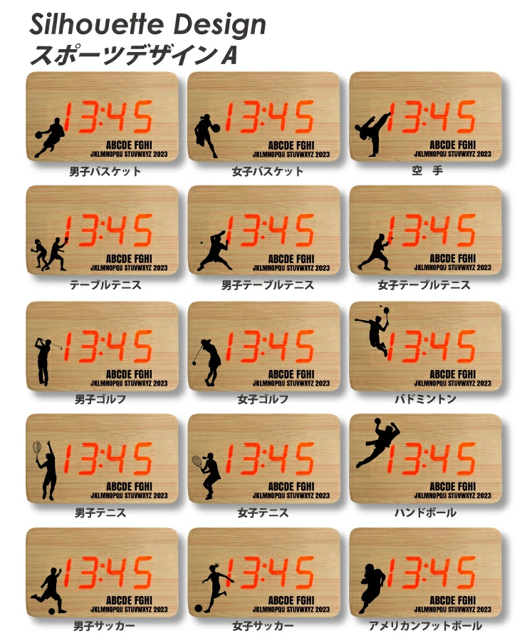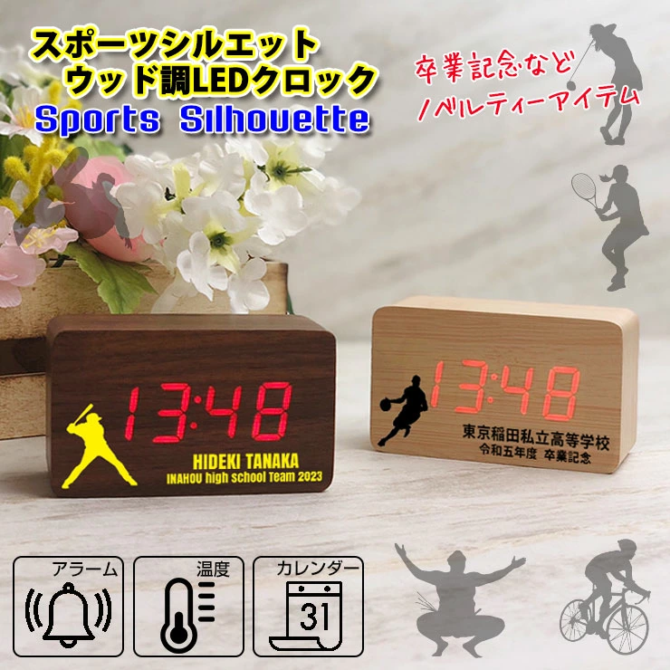 部活 卒部 引退 スポーツシルエットデザイン 名入れ ウッド調LEDクロック 時計 置時計 ラッピング無料 記念品 クロック ウッド調 LED デジタル おしゃれ 記念品 卒業記念品 ノベルティ サッカー 野球 テニス バレー バスケット