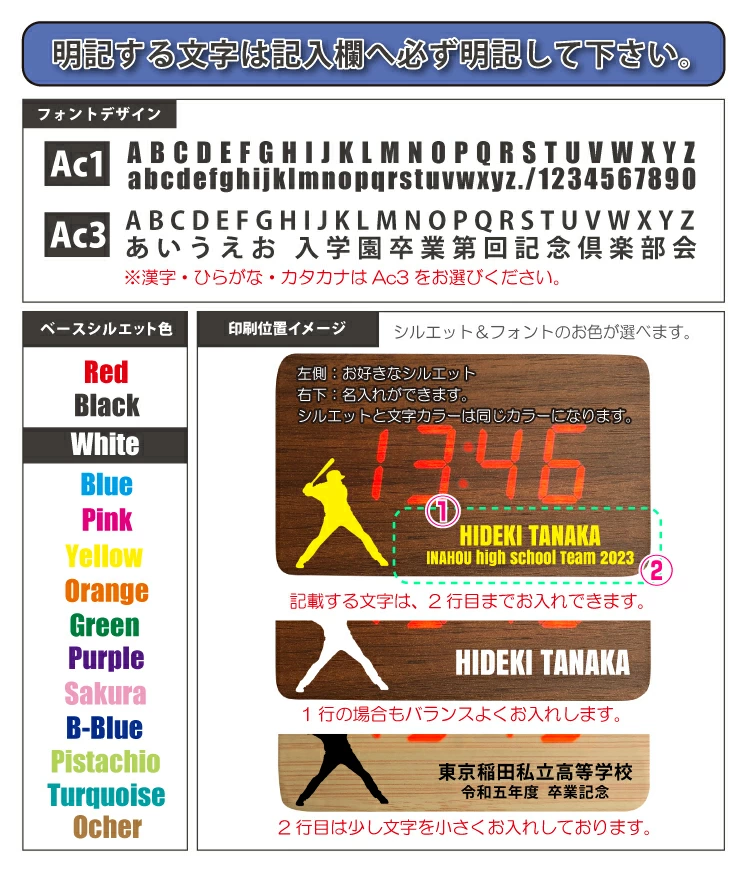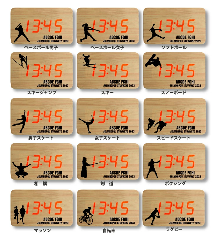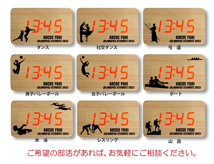 部活応援 名入れ 文字入れ可能 スポーツシルエット ウッド調LEDクロック (全2色)