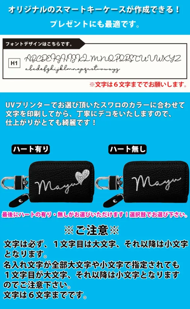 そこにお好きな名入れとスワロデコで、オリジナルのスマートキーケースに♪