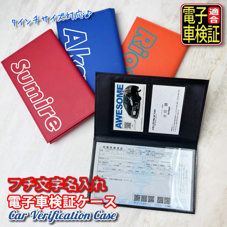 フチ文字 名入れ 電子車検証ケース 全7色 薄型 レザー 電子車検証入れ