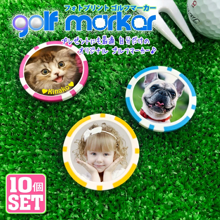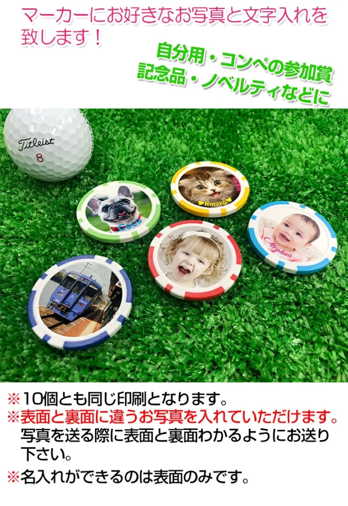 お好きな写真と文字入れもプリントができるゴルフマーカー【10個セット】