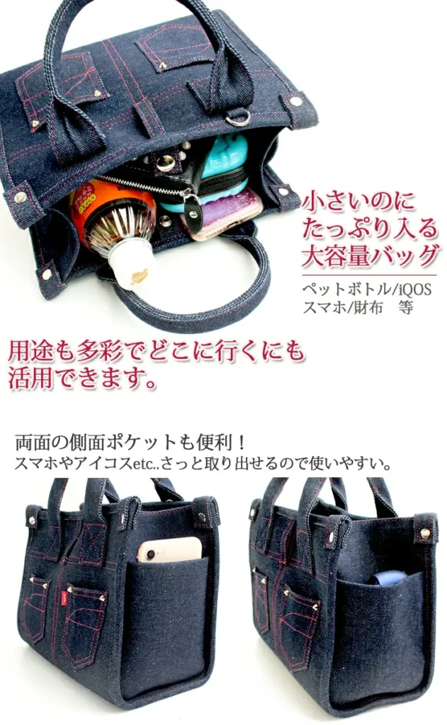 ミニ トートバッグ リアルデニムシリーズ (全4色) tote bag 高級感 ミニバッグ バック ミニトートバッグ ミニトートバック ショルダー付 ラッピング無料 スタッズ レディース メンズ ジーンズ デニム 【AWESOME/オーサム】