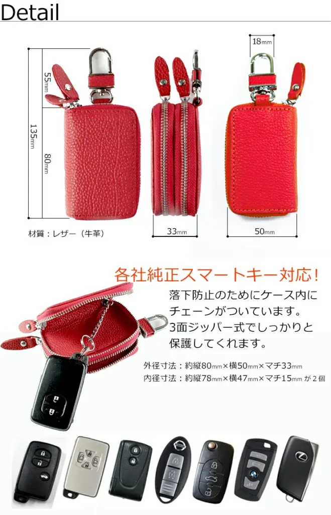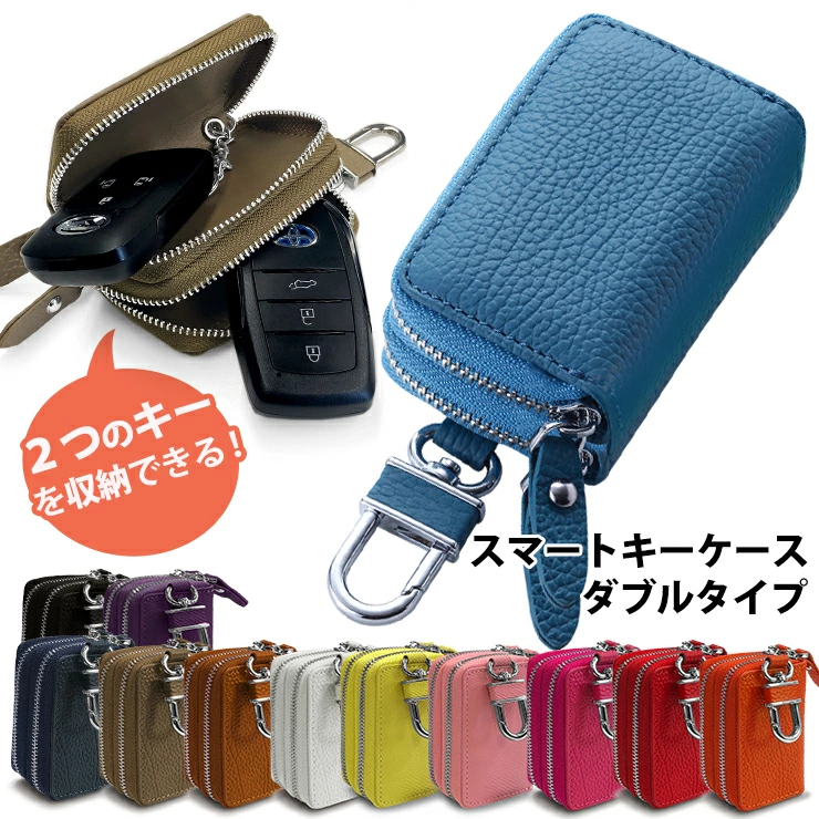 本革 スマートキーケース ダブルファスナータイプ(全23色) トヨタ ホンダ 日産 スズキ ダイハツ マツダ スバル 三菱 プリウス スマートキーカバー キーケース スマートキー 鍵 ダブルキーケース ダブルポケット 車の鍵 2個 箱入り