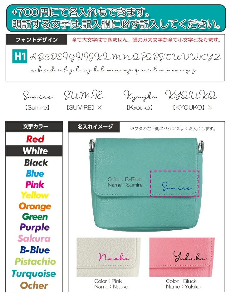 +700円で名入れが可能です。名入れする場合の英語は必ず備考欄にお書き下さい。(1文字目が大文字、それ以外は小文字になります。)