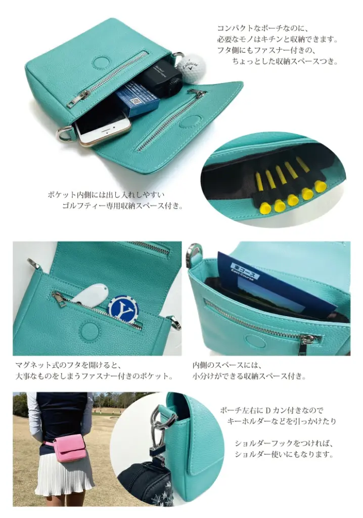 ゴルフ用品 シンプルでオシャレなレザーのポーチ ベルト付き