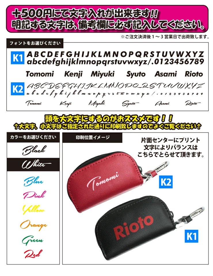 ※名入れする英語は必ず備考欄にお書き下さい。(大文字と小文字もそのままプリントするのでお間違いないようお願いします。)