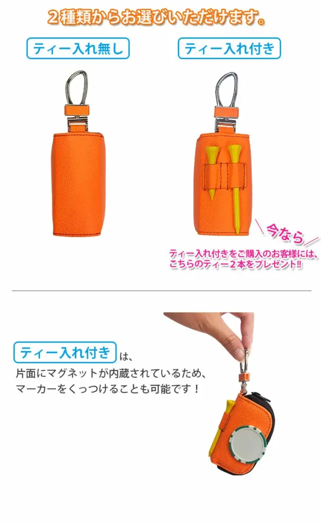【名入れ可能】 ゴルフボールケース 全7色 ティー入れ付き 2個収納 ゴルフボールホルダー ボールケース ゴルフボール ケース ポーチ カラビナ 収納 ラッピング無料