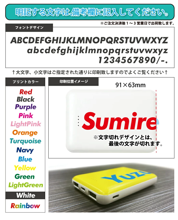 文字切れ名入れ モバイルバッテリー 5000mAh 薄型