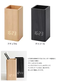 ペンスタンド機能の付いたスタイリッシュな木製LEDクロック。