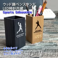 部活 卒部 引退 スポーツシルエットデザイン 名入れ ウッドペンスタンドクロック ペン立て