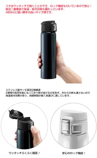 オリジナルのマイボトルが作れる! 片手で簡単に開閉出来るワンタッチボトル。