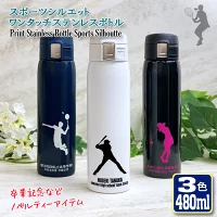部活応援 名入れ 文字入れ可能 スポーツシルエット ワンタッチカービングサーモボトル 480ml (全3色)